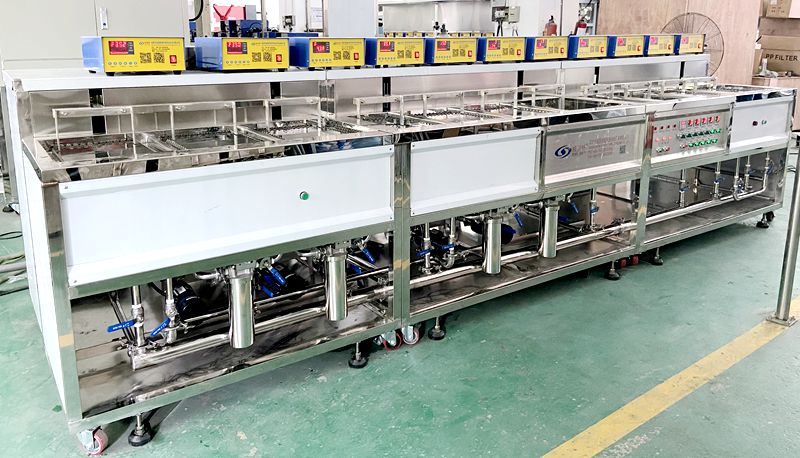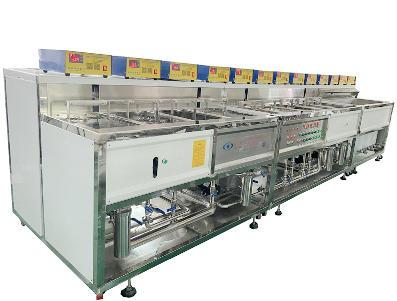 高硼硅玻璃管超聲波清洗機(jī)VGT-1307FS 高硼硅玻璃管超聲波清洗機(jī)共有13個功能槽,配置有循環(huán)過濾系統(tǒng)、自動恒溫系統(tǒng)、拋動系統(tǒng)、超聲波清洗系統(tǒng)、溢流系統(tǒng)等。