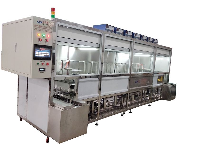 威固特體感觸控濾光片超聲波清洗機威固特體感觸控濾光片超聲波清洗機主要由超聲波發生器、換能器、清洗槽、儲液槽、循環過濾系統、自動恒溫加熱系統、拋動系統、抽氣罩、冷水機、機架、電控柜等組成。